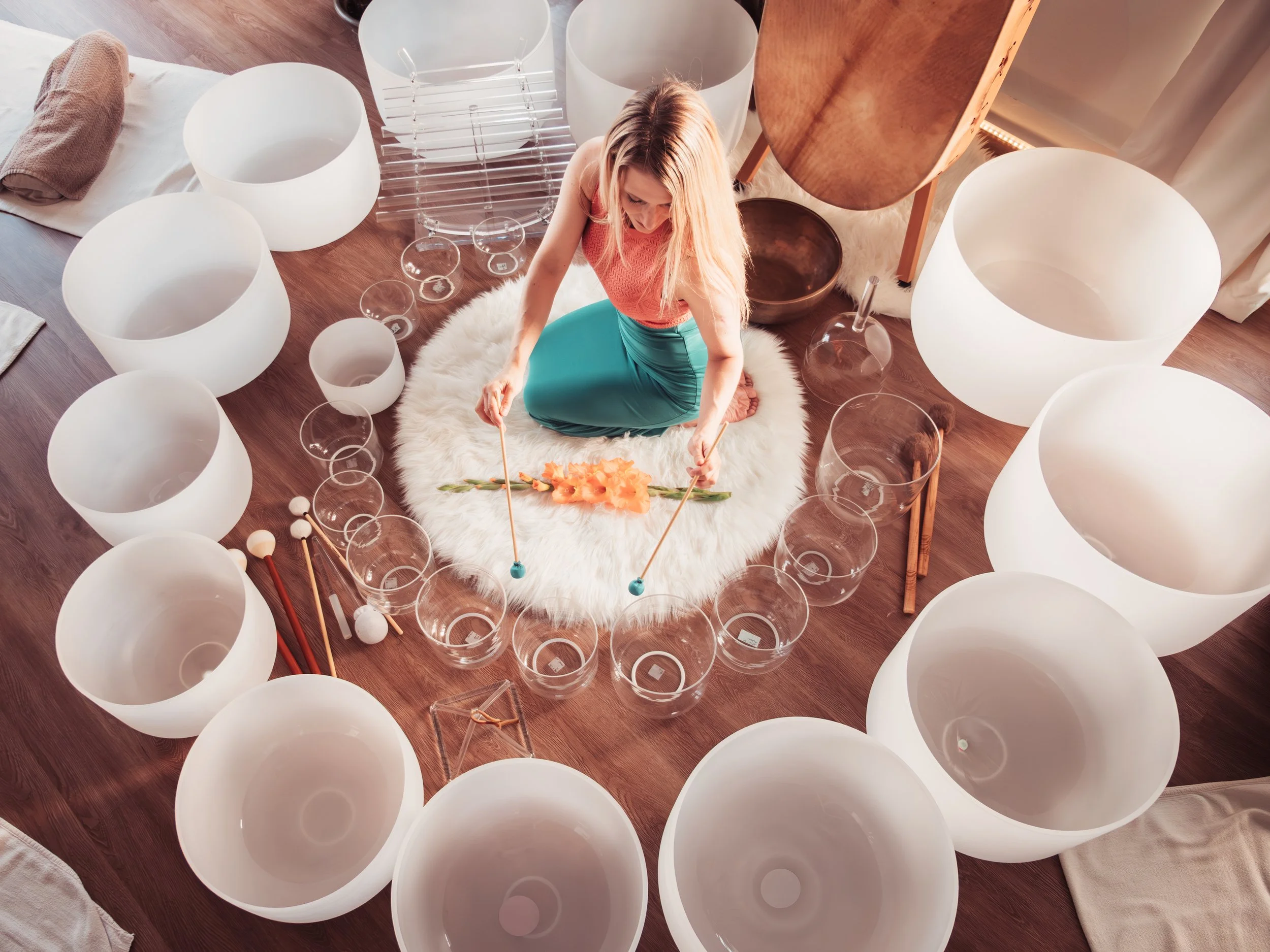 Sous les résonances omnidirectionnelles des instruments de cristal, l’activité des hémisphères cérébraux s’équilibre, le mental se stabilise, les battements cardiaques ralentissent et le rythme respiratoire s’harmonise à la détente.
